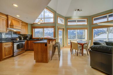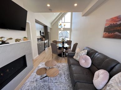 Skyline Peaks is Canmore's brand new vacation property located only a 10 minute walk from downtown. Features: Full sized kitchen & 2nd kitchenette, 3 bedrooms + sofa bed, 3.5 bathrooms, gas fireplace, work desk, 4 TVs, free wifi, west facing deck, BBQ, outdoor gas fireplace table, heated garage.
